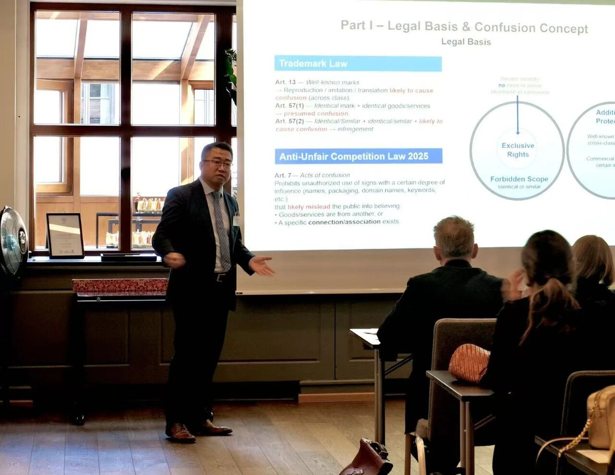 在本次年會上,趙雷律師圍繞“中國司法實(shí)踐中對商標(biāo)混淆可能性的認(rèn)定”這一主題展開分享,引起了參會海外同仁的廣泛興趣。趙雷律師首先向參會嘉賓介紹中國商標(biāo)法與反不正當(dāng)競爭法中的相關(guān)規(guī)定等法律依據(jù),并結(jié)合豐富的案例從商標(biāo)近似程度、商品或服務(wù)類似程度、商標(biāo)顯著性和知名度、商標(biāo)使用方式、相關(guān)公眾認(rèn)知等方面深入分析司法實(shí)踐中對商標(biāo)混淆可能性的考量因素。隨后,趙雷律師通過對“新百倫”案、“MK”案等典型案例的詳細(xì)解讀,重點(diǎn)分析了中國司法實(shí)踐中對商標(biāo)反向混淆的判定規(guī)則。最后,趙雷律師在多年實(shí)務(wù)經(jīng)驗(yàn)的基礎(chǔ)上為企業(yè)總結(jié)了多項(xiàng)重要保護(hù)策略及面對侵權(quán)時的解決思路,干貨滿滿,獲得在場嘉賓的一致好評,并由此進(jìn)一步增進(jìn)了集佳與海外同仁之間的了解與互信。