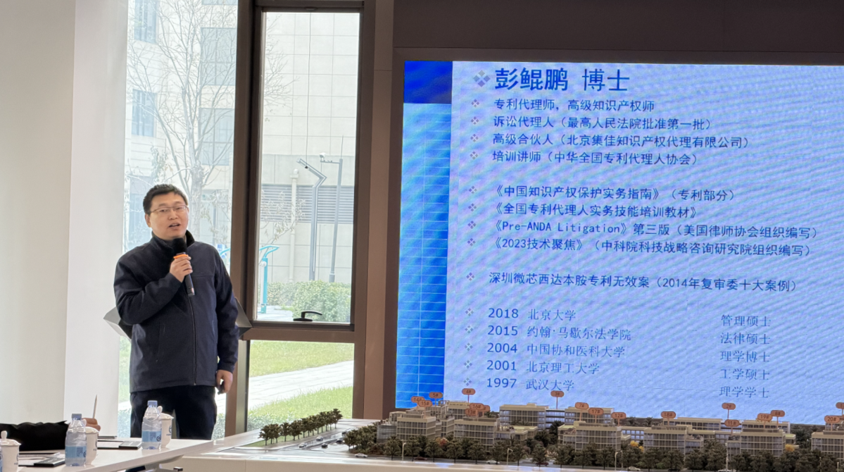 為進(jìn)一步提升企業(yè)知識(shí)產(chǎn)權(quán)創(chuàng)造、保護(hù)和運(yùn)用能力,助力企業(yè)攻克高價(jià)值專利挖掘難題、筑牢出海知識(shí)產(chǎn)權(quán)“防護(hù)墻”,2025年10月24日,由北京市知識(shí)產(chǎn)權(quán)局、北京市知識(shí)產(chǎn)權(quán)公共服務(wù)中心聯(lián)合主辦的知識(shí)產(chǎn)權(quán)服務(wù)機(jī)構(gòu)業(yè)務(wù)講解系列活動(dòng)在中關(guān)村(通州)醫(yī)學(xué)轉(zhuǎn)化產(chǎn)業(yè)園成功舉辦,活動(dòng)吸引了園區(qū)二十余家生物醫(yī)藥、醫(yī)療器械方面的創(chuàng)新企業(yè)代表參加。集佳合伙人彭鯤鵬博士應(yīng)邀參加活動(dòng),圍繞企業(yè)出海知識(shí)產(chǎn)權(quán)保護(hù)策略為科技企業(yè)講解相關(guān)知識(shí),加強(qiáng)與園區(qū)企業(yè)的溝通交流。
